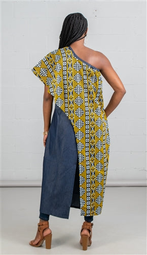 One-shoulder African Print Denim Tunic Duster (One Size)