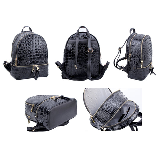 ALLIGATOR CROC 2-IN-1 FASHION BACKPACK W/MATCHING WALLET SET~RED