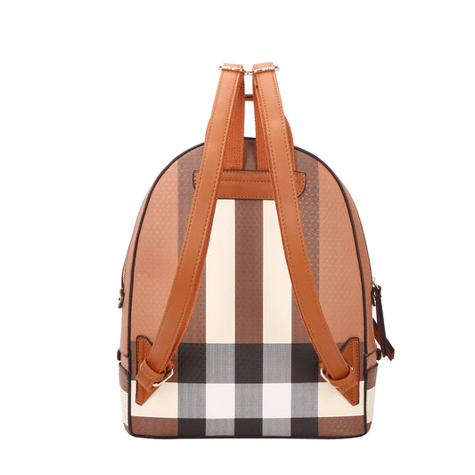2-IN-1 FASHION PLAID PRINT BACKPACK WALLET SET~BROWN