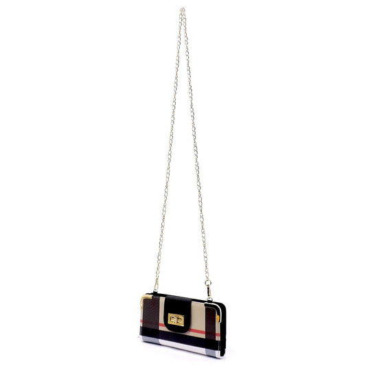 Crossbody PLAID TURN-LOCK SIGNATURE WALLET w/LONG STRAP