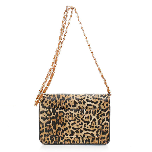 LEOPARD COLORBLOCK CROSSBODY BAG~BROWN
